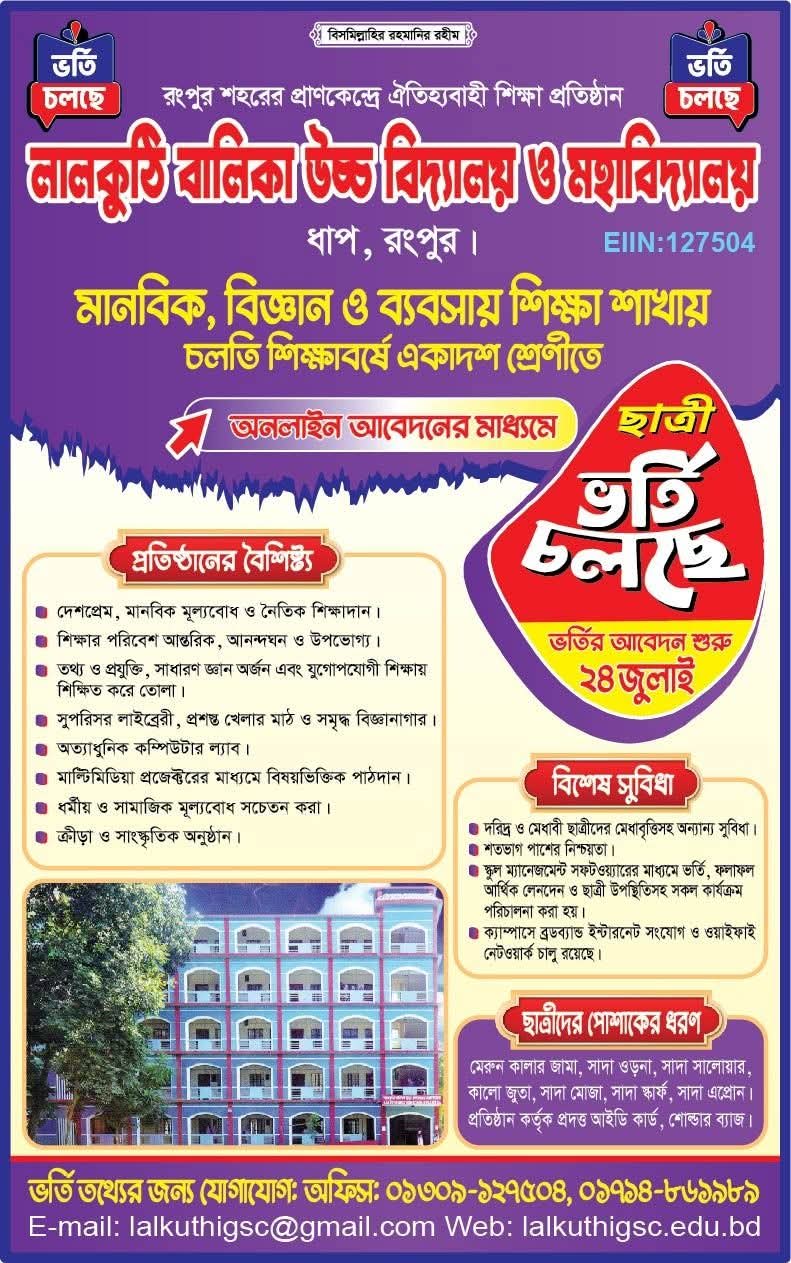 লালকুঠি বালিকা উচ্চ বিদ্যালয় ও মহাবিদ্যালয়, ধাপ, রংপুর