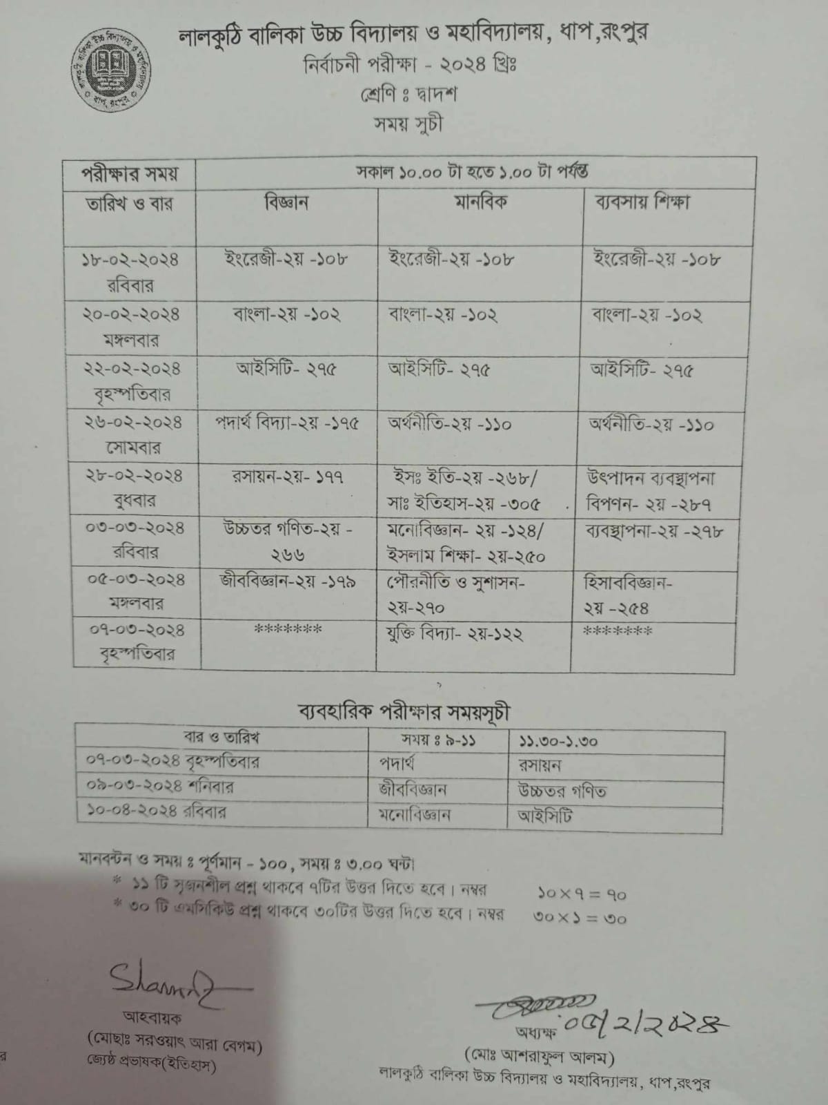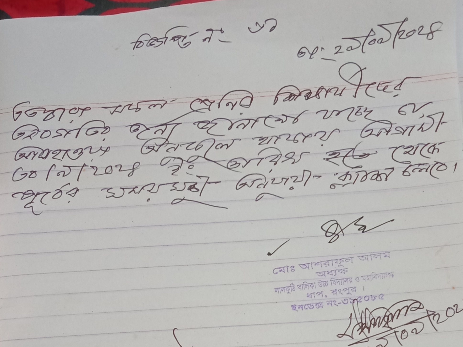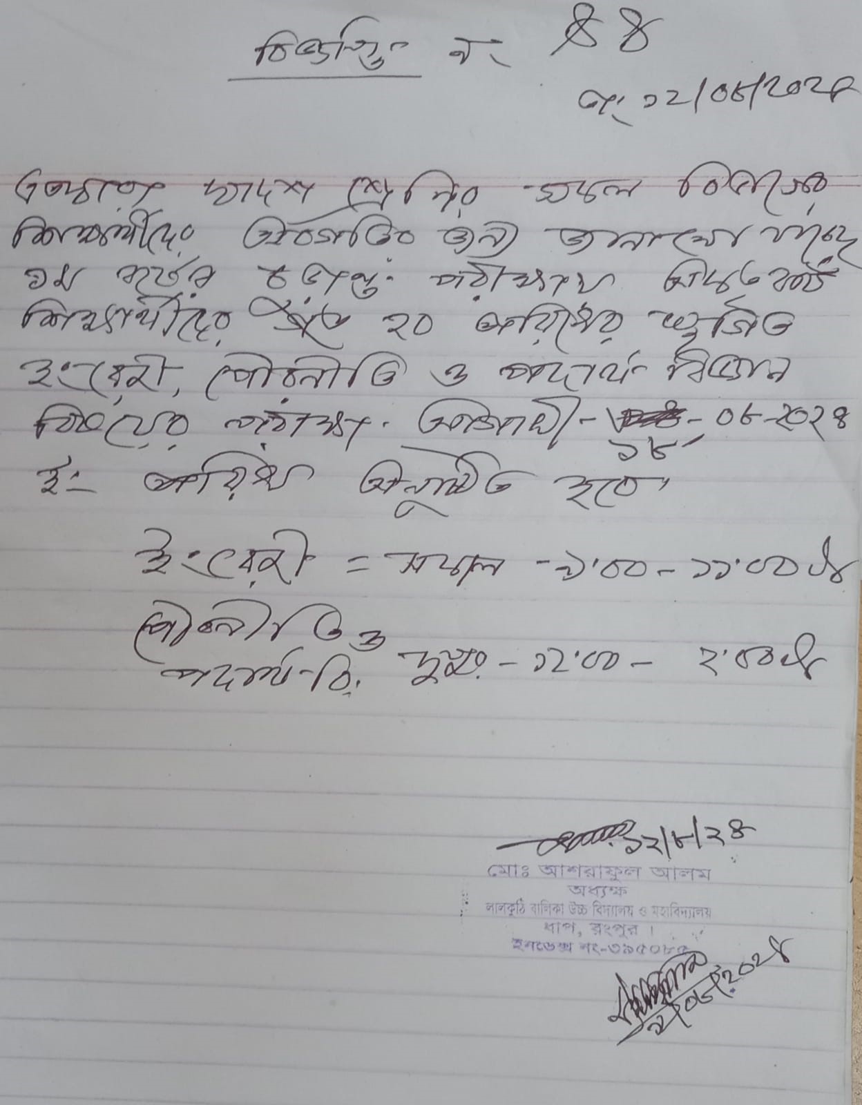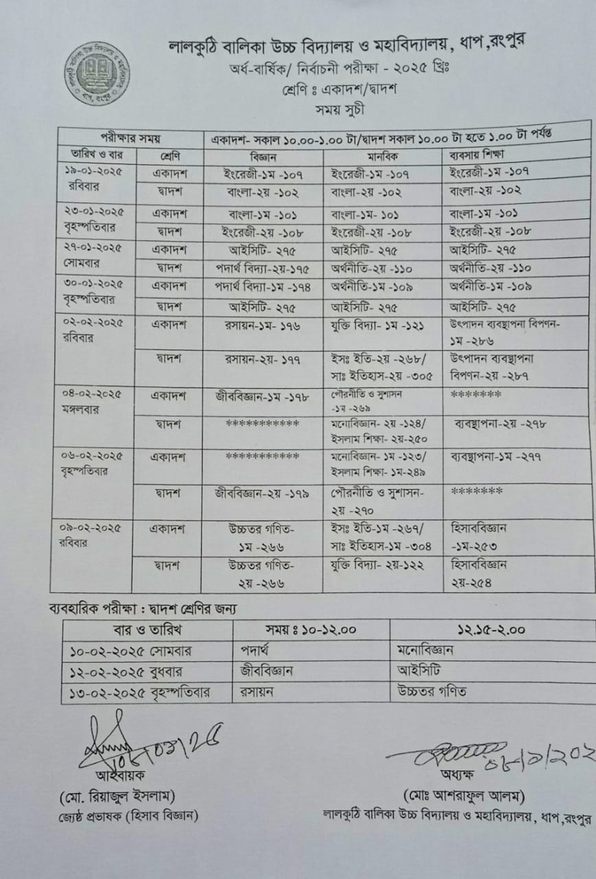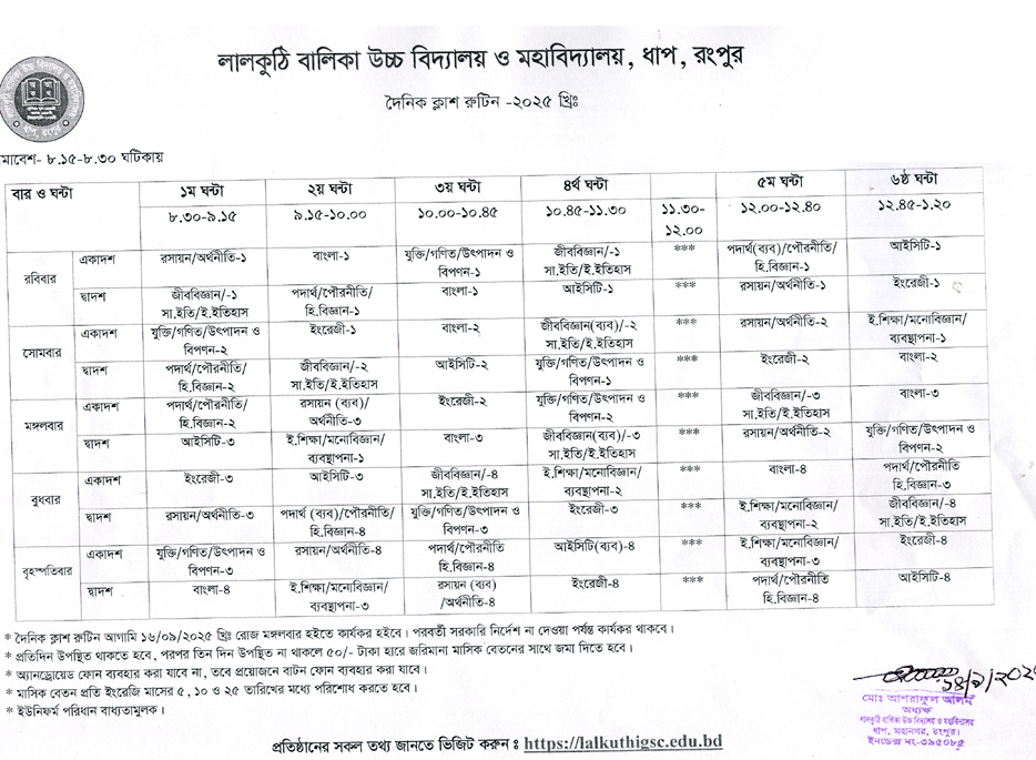 সভাপতি, লালকুঠি বালিকা উচ্চ বিদ্যালয় ও মহাবিদ্যালয়, ধাপ, রংপুর